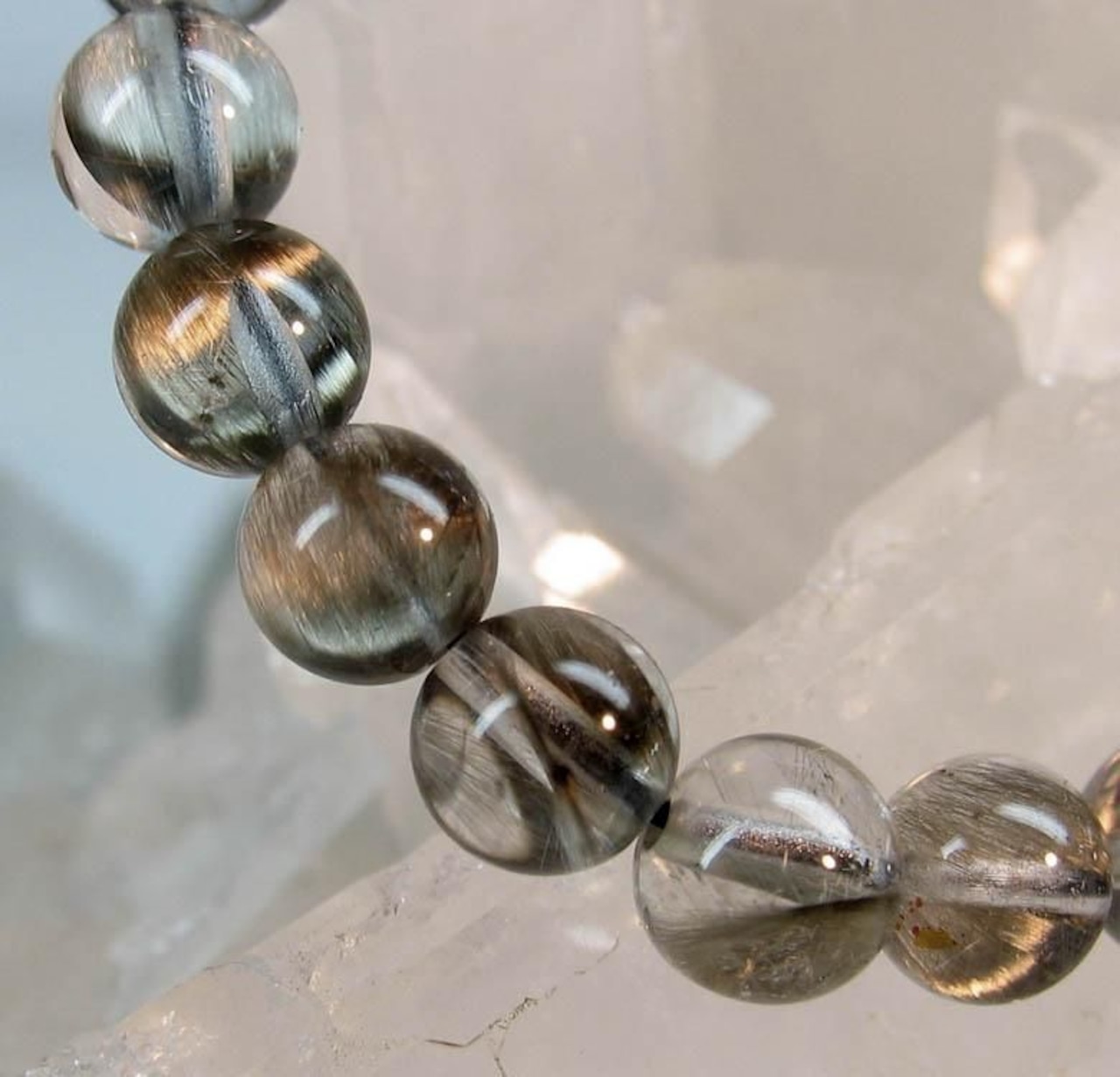 高級プラチナルチル水晶ブレスレット6.5mmE552