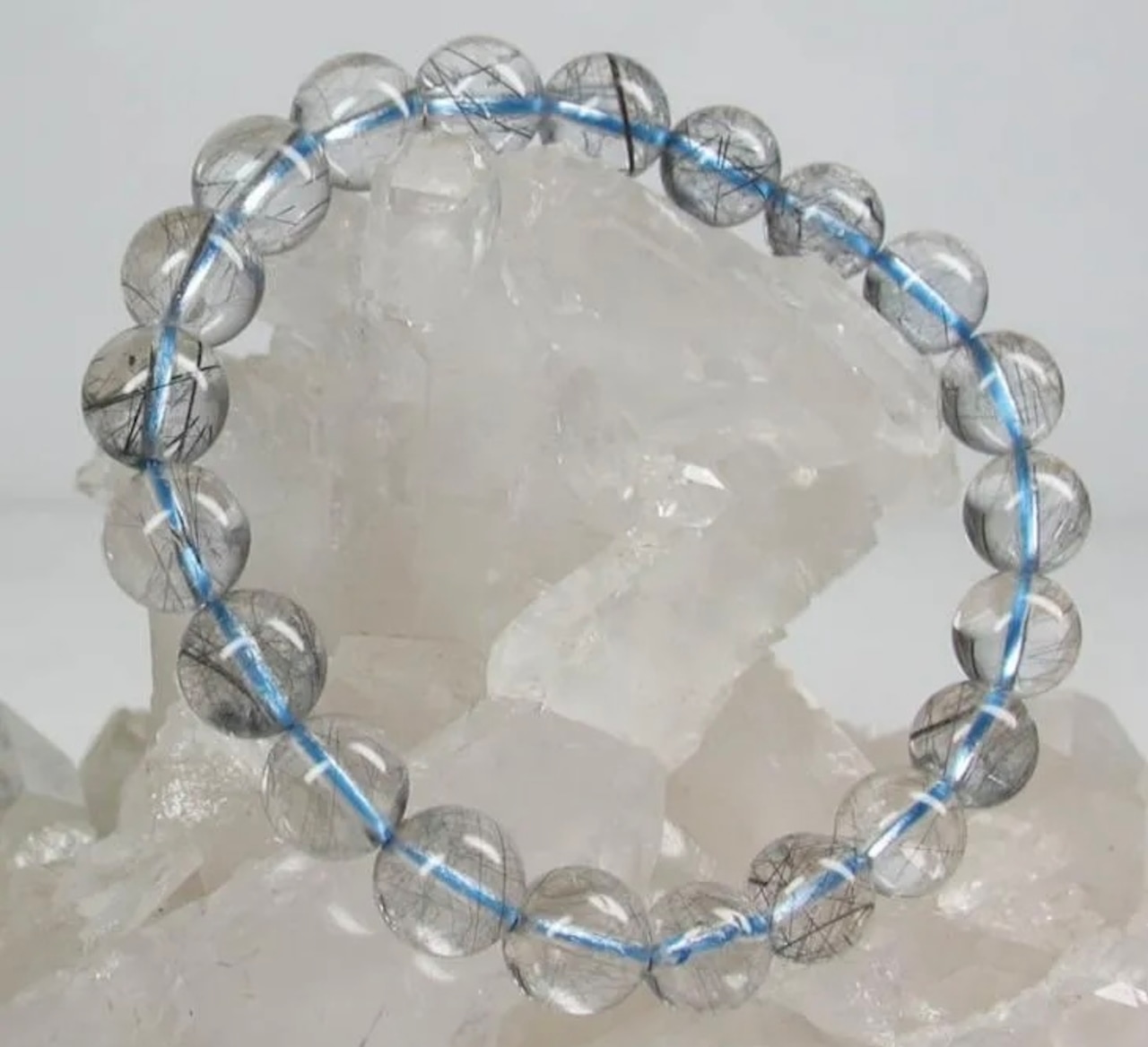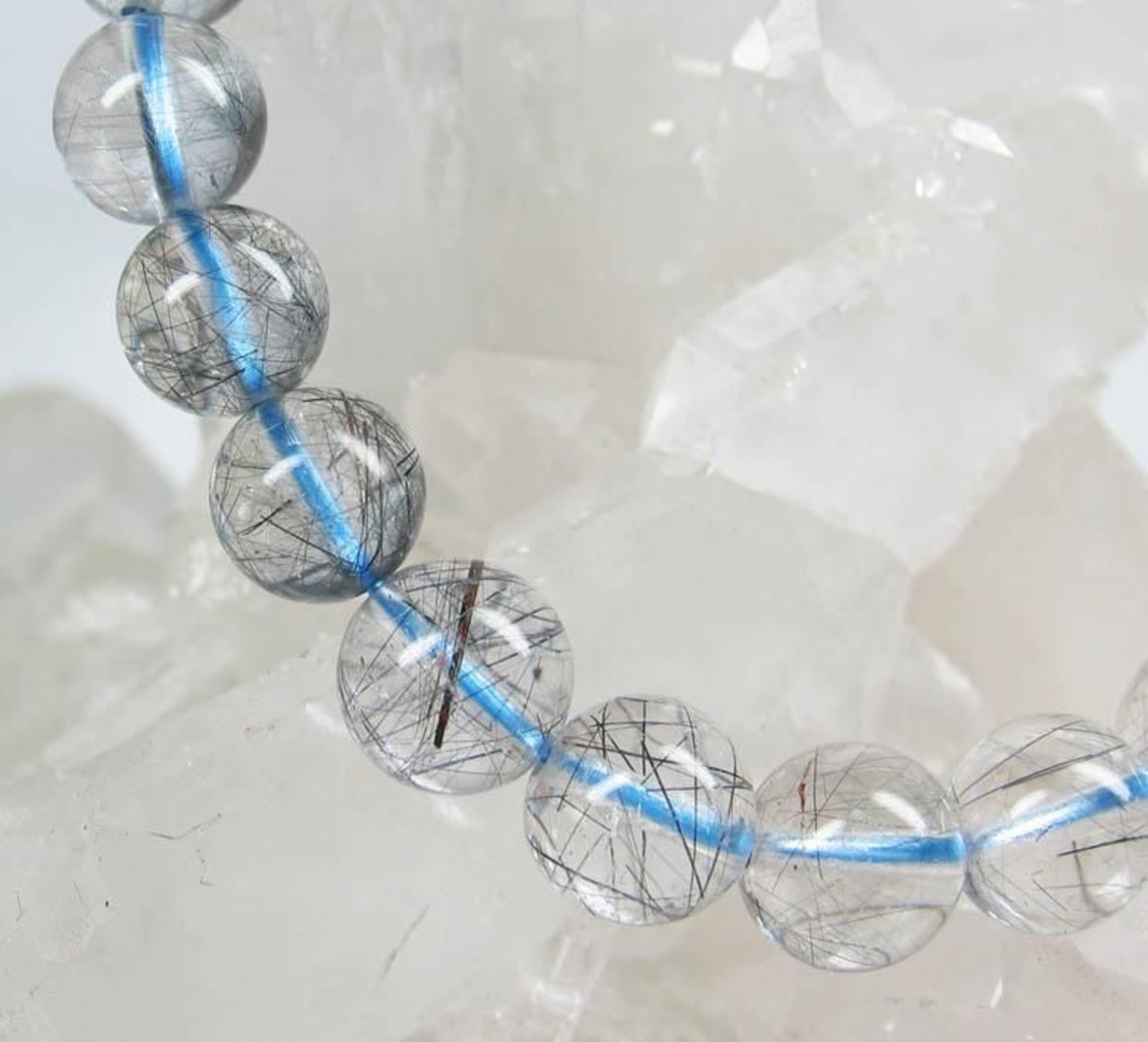 高品質!ブルールチルクォーツ(藍針水晶)ブレスレットです。透明度抜群で、光にすかすと内包された針には黒っぽさの中にうっすらと藍味が感じられ、 とても美しいものです。