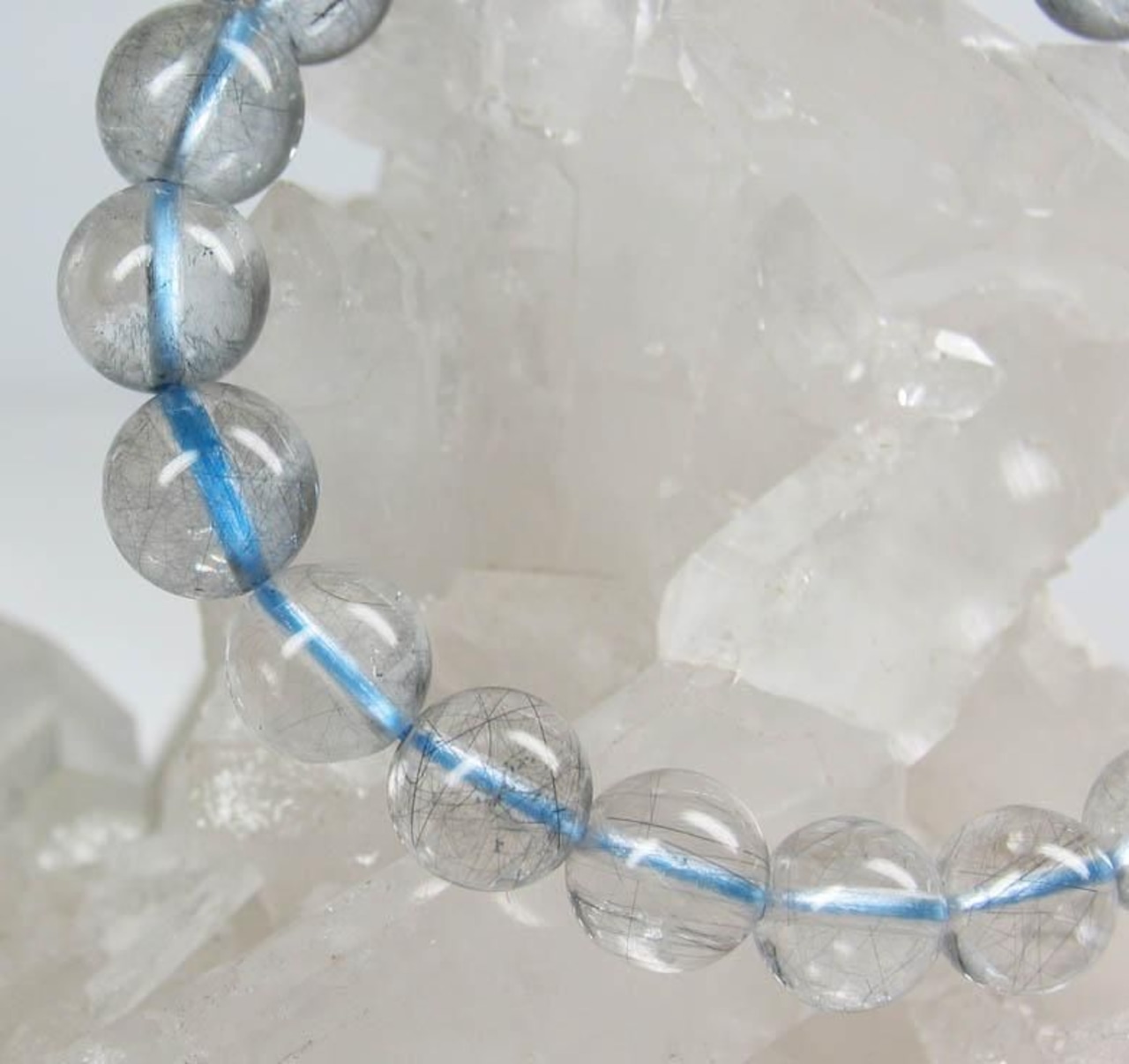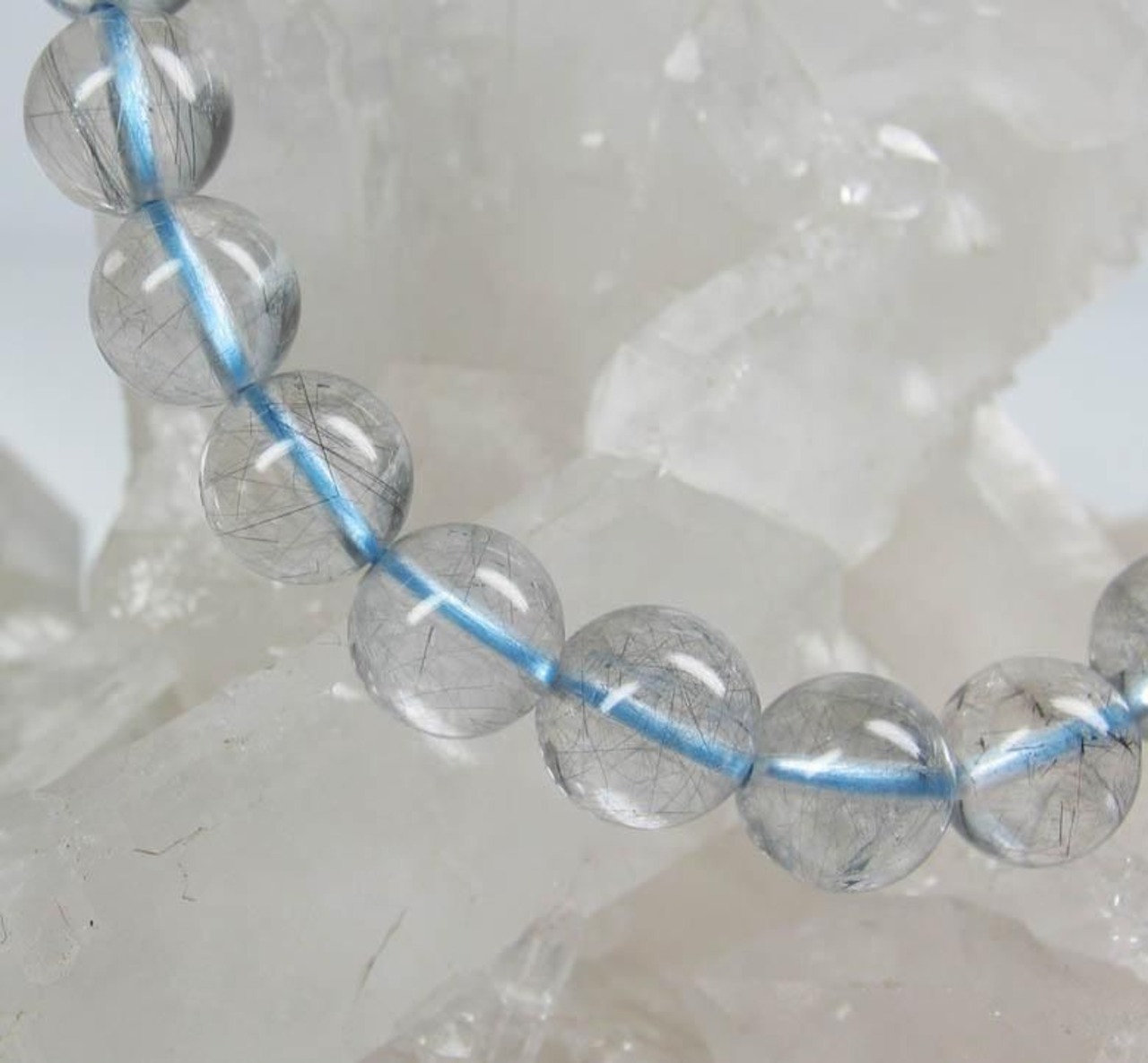 高品質!ブルールチルクォーツ(藍針水晶)ブレスレットです。透明度抜群で、光にすかすと内包された針には黒っぽさの中にうっすらと藍味が感じられ、 とても美しいものです。