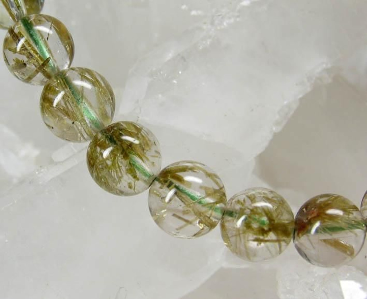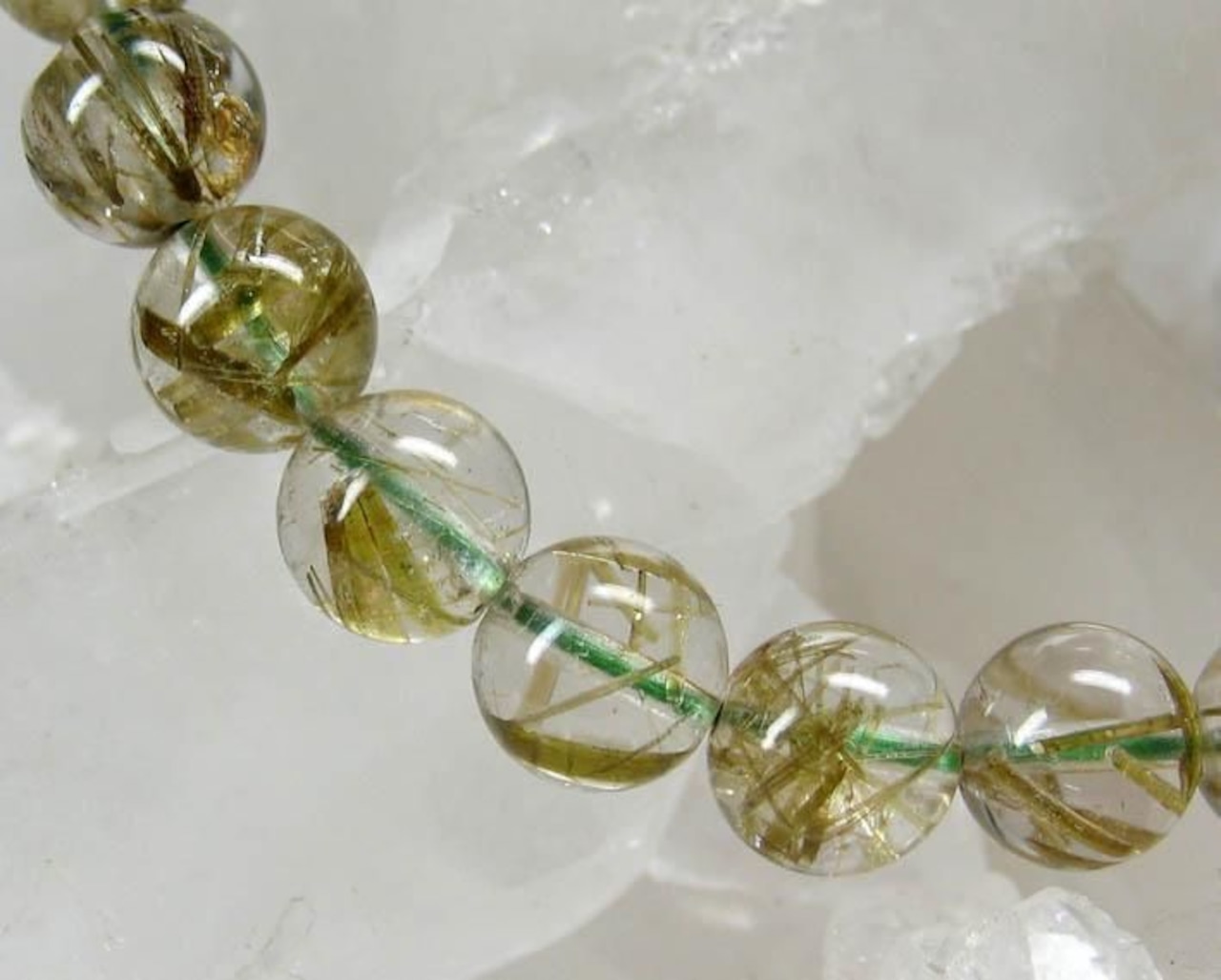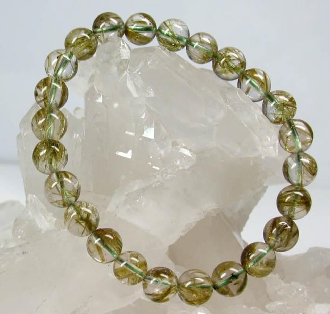 ブラジル産、極上のグリーンルチルクォーツ(緑針水晶)ブレスレットです。