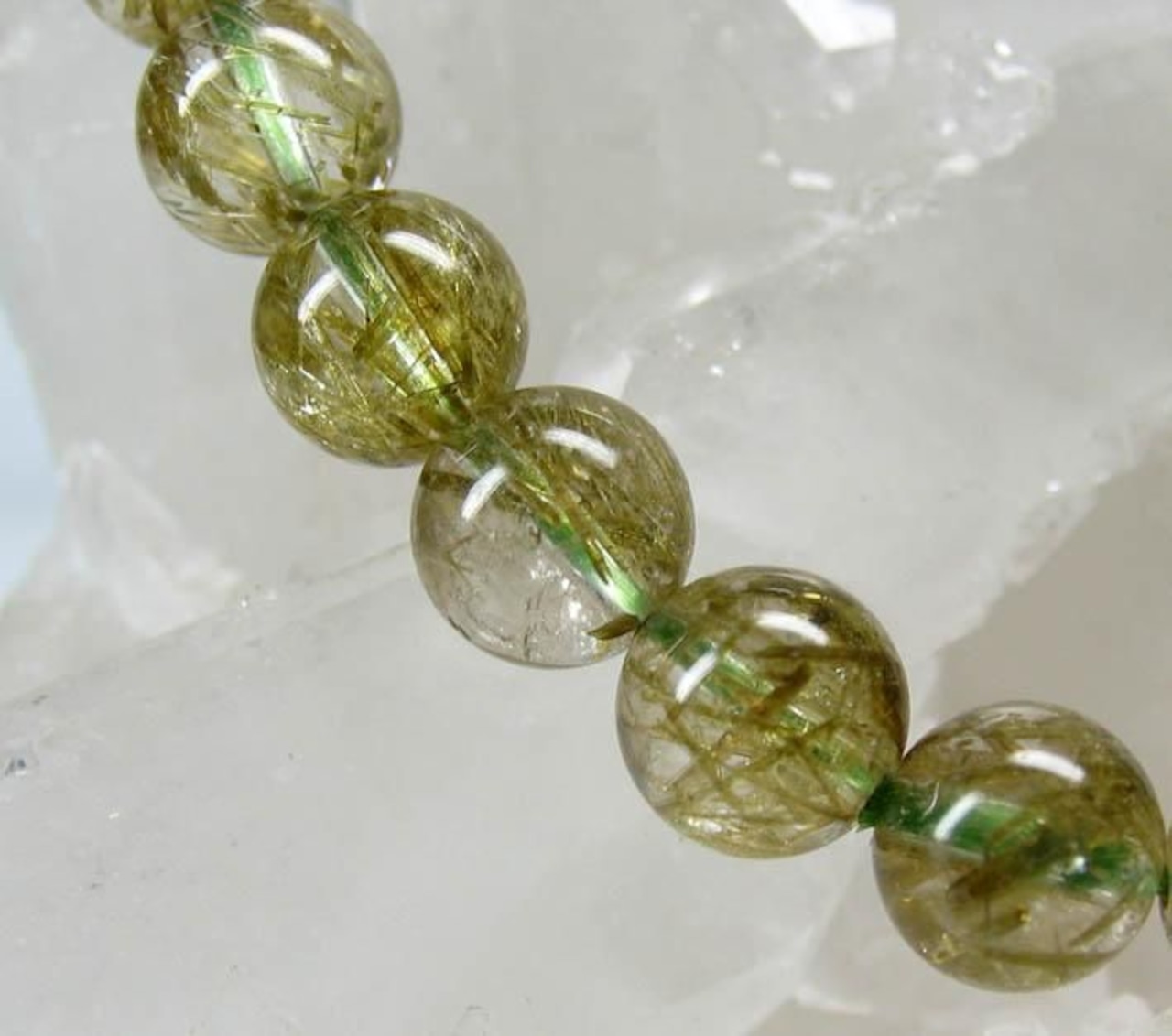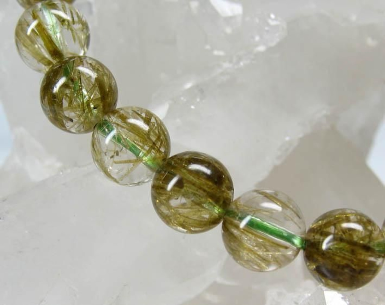 ブラジル産、極上のグリーンルチルクォーツ(緑針水晶)ブレスレットです。
