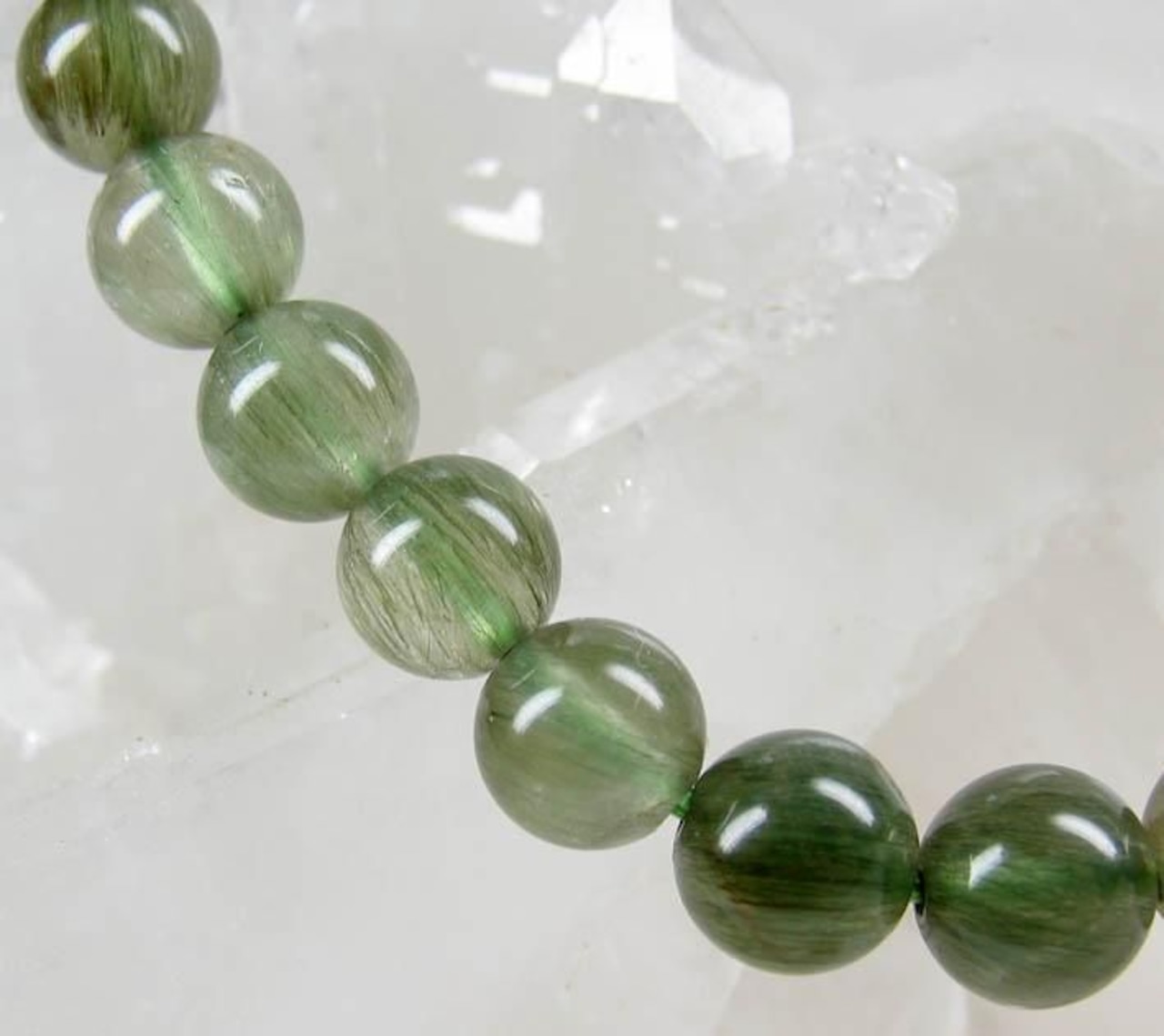 ブラジル産、極上のグリーンルチルクォーツ(緑針水晶)ブレスレットです。