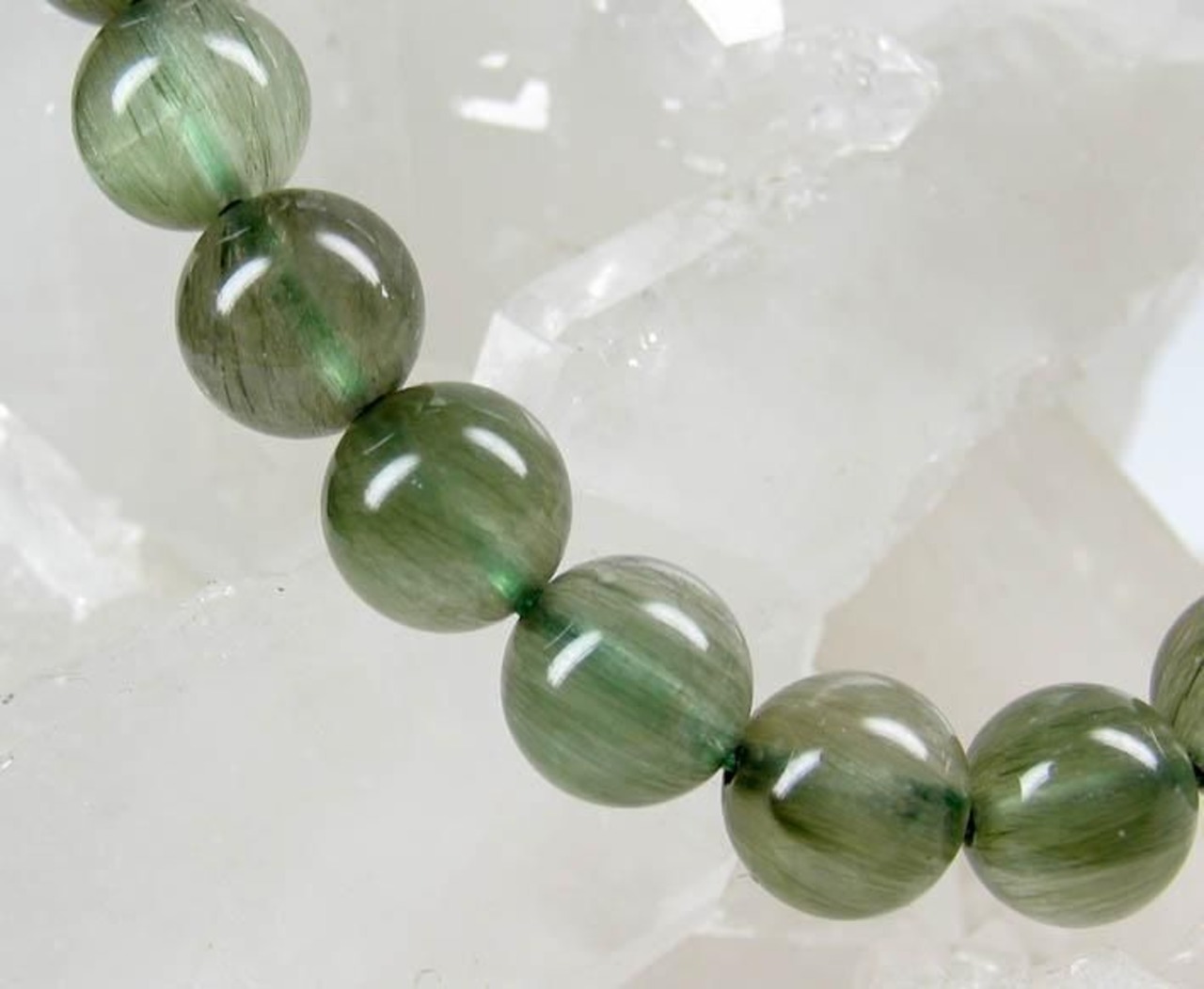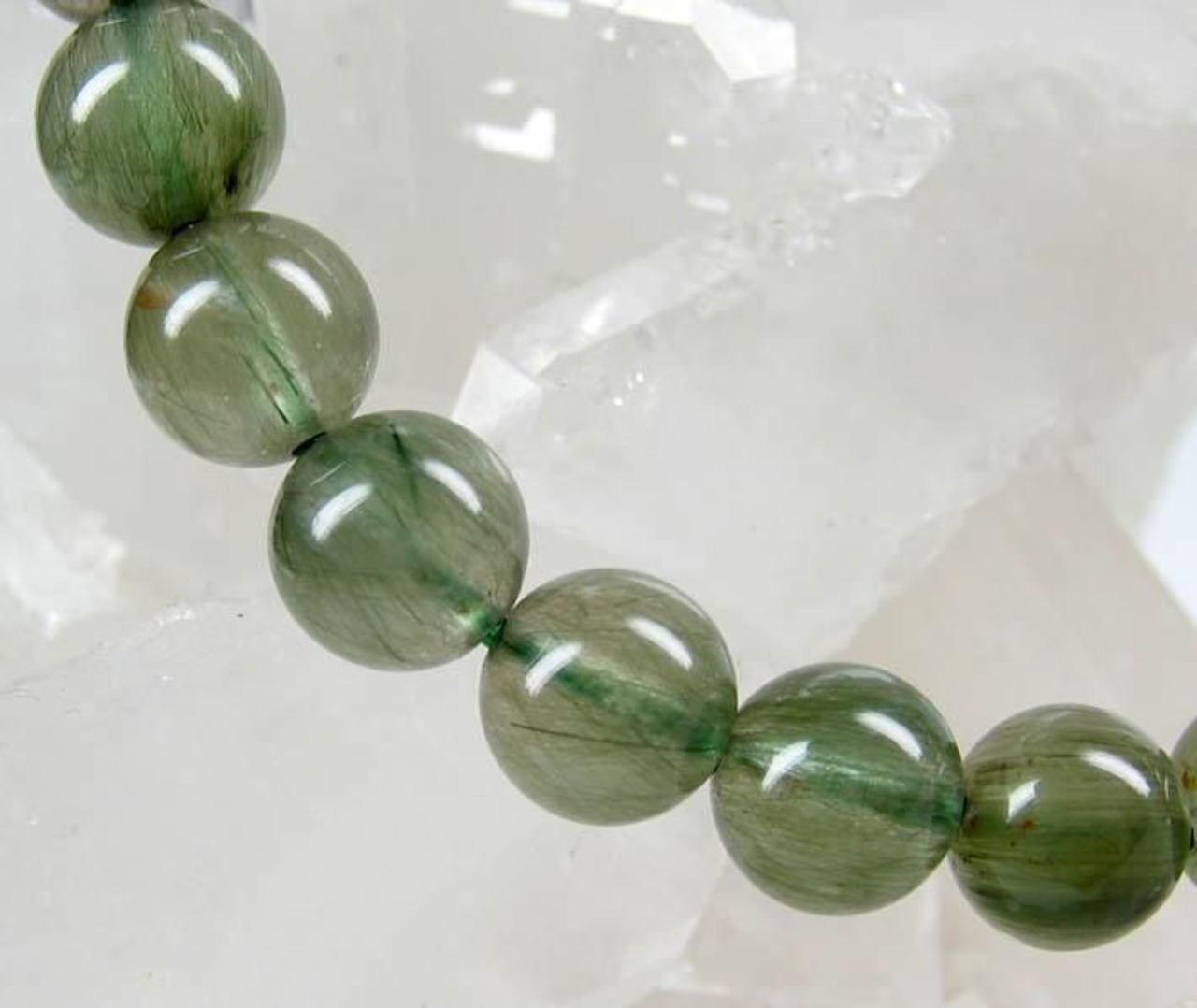 グリーンルチル水晶ブレスレット★8.5mmD706