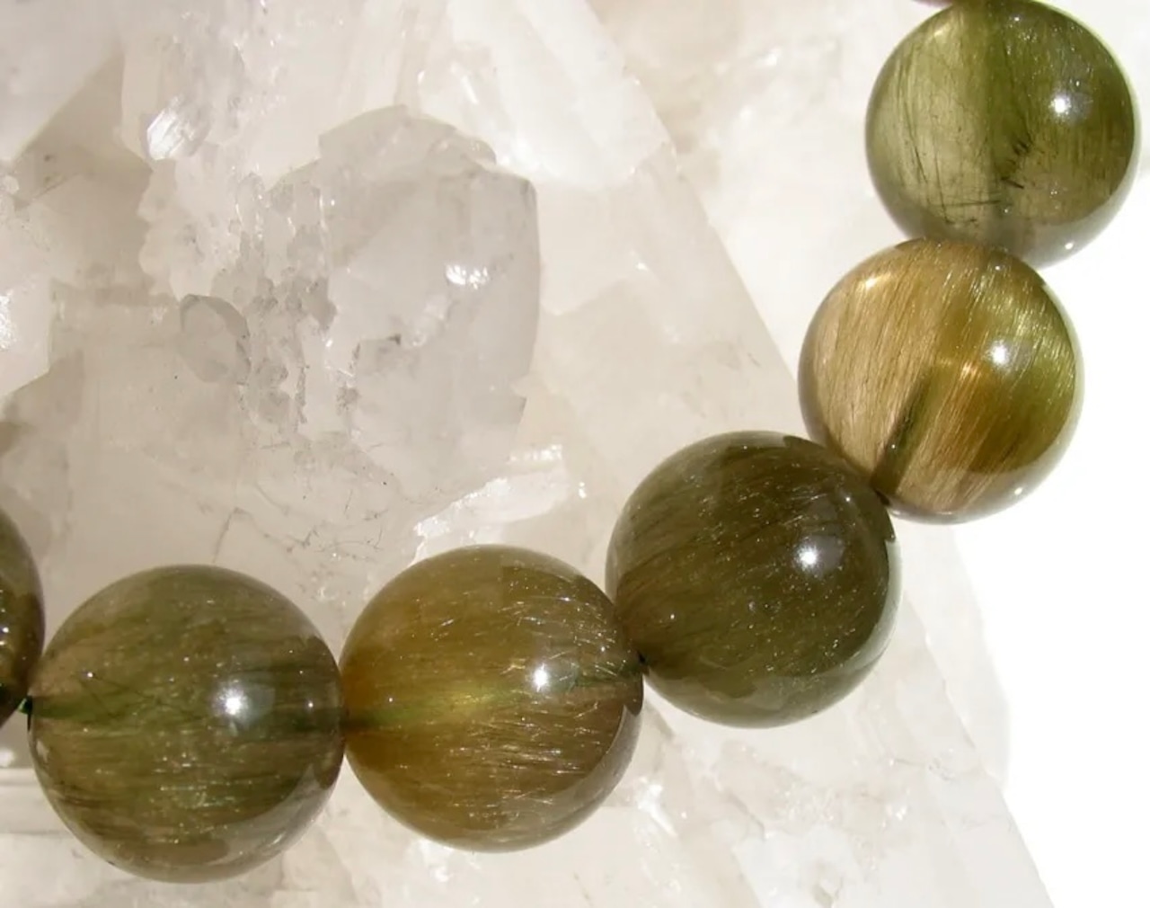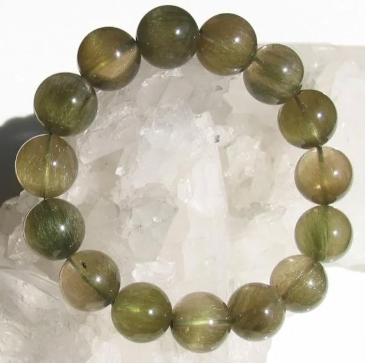 ブラジル産、極上のグリーンルチルクォーツ(緑針水晶)ブレスレットです。