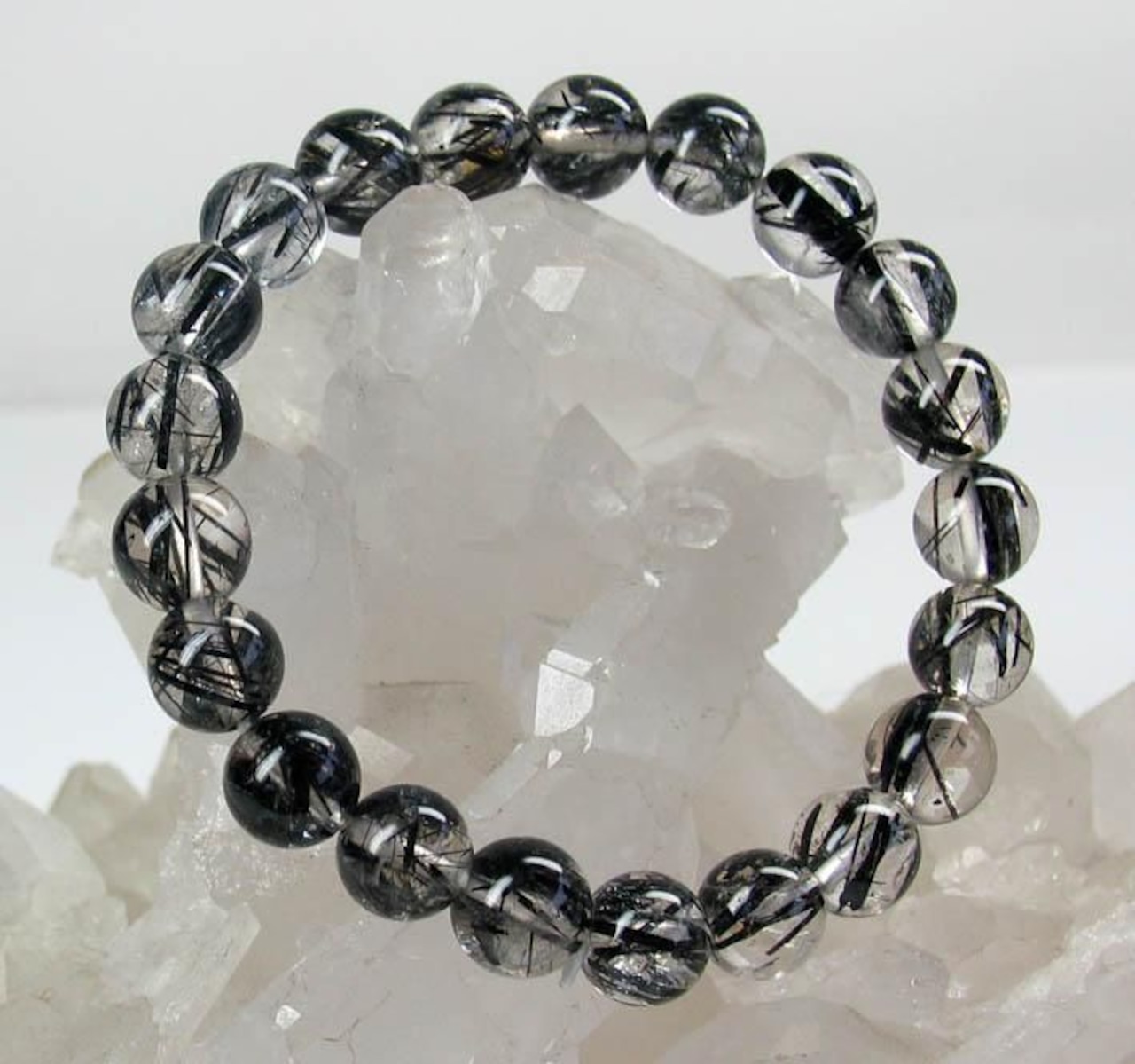 ブラジル産、高品質ブラックルチル水晶(黒針水晶)ブレスレットです。