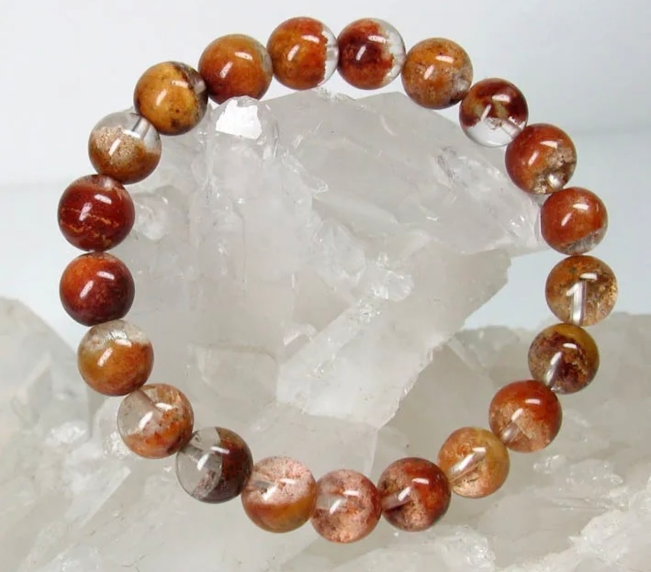 極上のガーデン水晶ブレスレットです。写真では分かりにくいですが、透明度抜群の天然水晶と綺麗なガーデンのハーモニーが実に美しいです♪