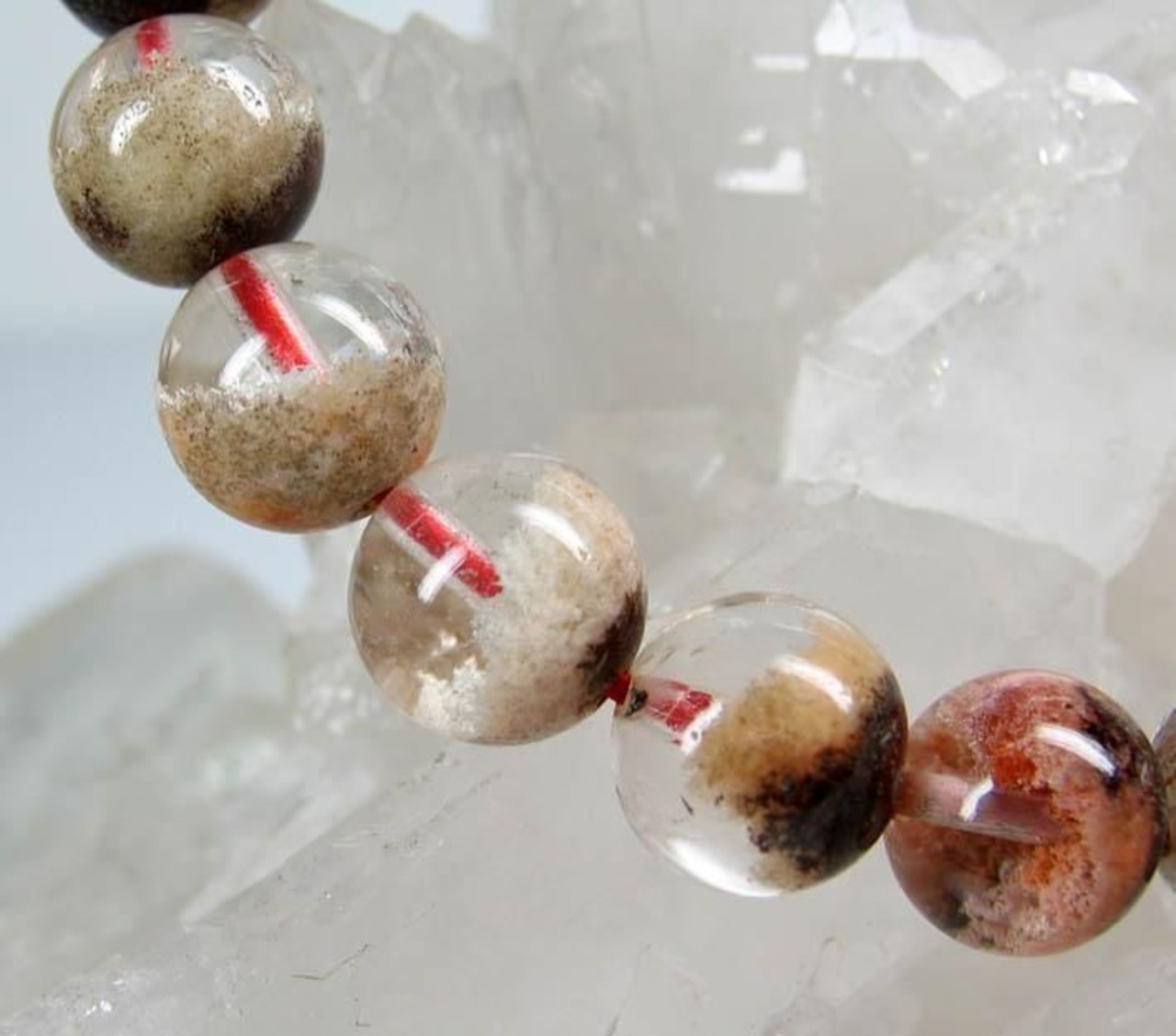 極上のガーデン水晶ブレスレットです。写真では分かりにくいですが、透明度抜群の天然水晶と綺麗なガーデンのハーモニーが実に美しいです♪