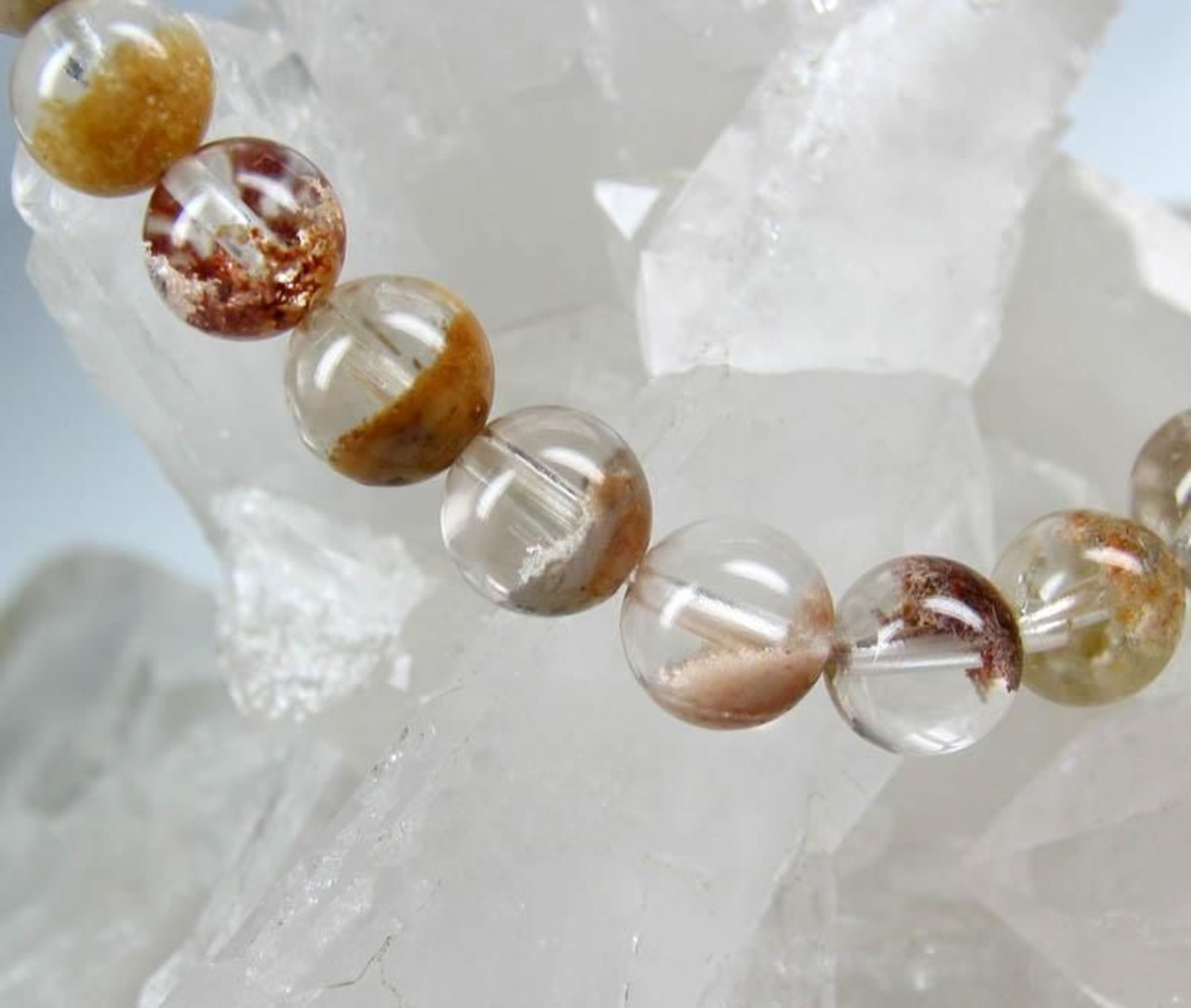 極上のガーデン水晶ブレスレットです。写真では分かりにくいですが、透明度抜群の天然水晶と綺麗なガーデンのハーモニーが実に美しいです♪