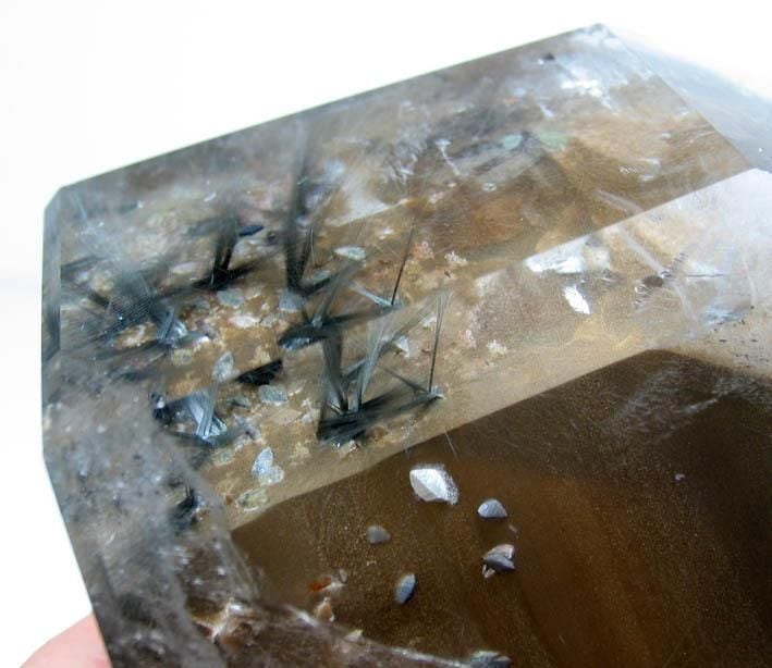 ブルッカイトルチル(プラチナルチル)入り、巨大なブラウンファントム水晶ポイントです。磨き。
