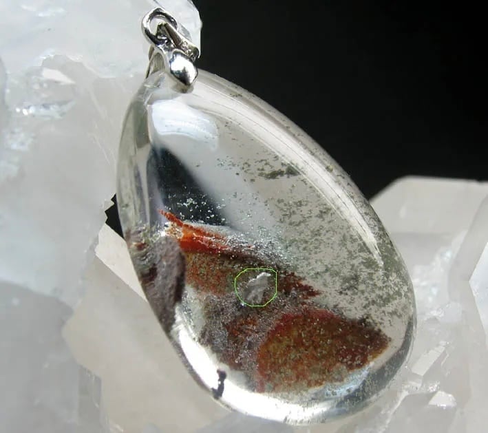 極上のガーデン水晶に小さな結晶が貫入している、貫入水晶(水晶in水晶)ペンダントです。超レア!
