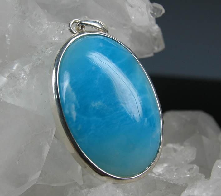 発見は1974年と比較的新しい宝石で、ドミニカ共和国の宝石商が、娘の名前「ラリ」とスペイン語の「海(マー)」を合わせて命名したと言われてます。