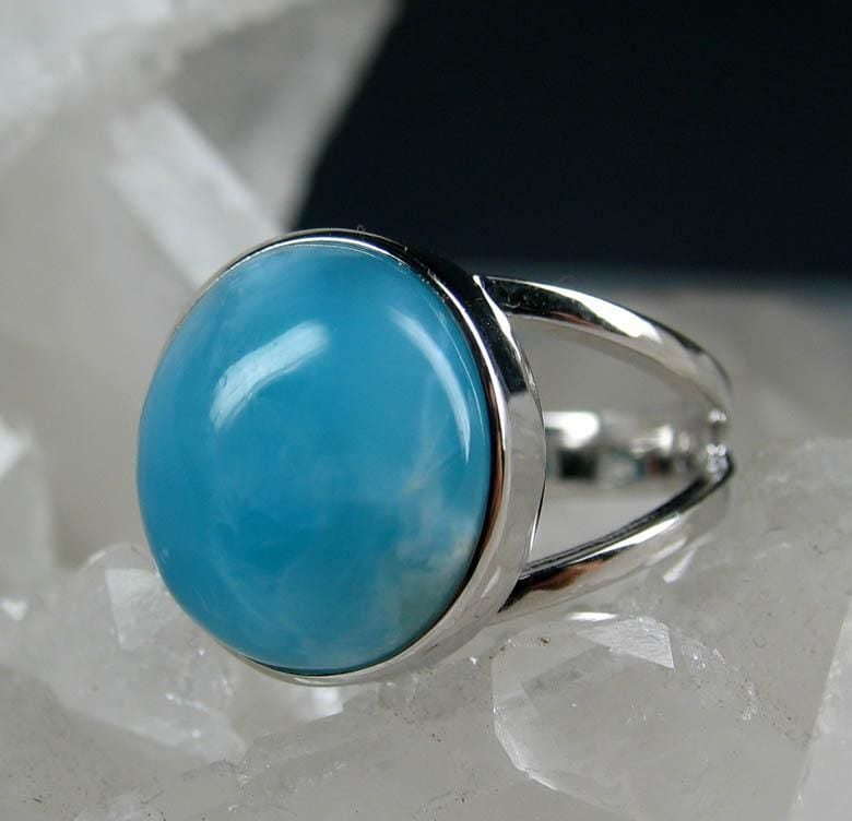 発見は1974年と比較的新しい宝石で、ドミニカ共和国の宝石商が、娘の名前「ラリ」とスペイン語の「海(マー)」を合わせて命名したと言われてます。