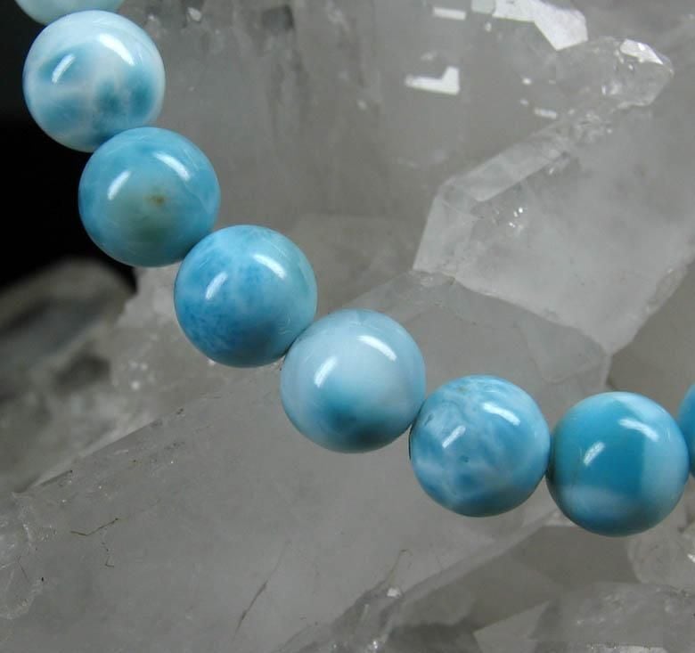 発見は1974年と比較的新しい宝石で、ドミニカ共和国の宝石商が、娘の名前「ラリ」とスペイン語の「海(マー)」を合わせて命名したと言われてます。