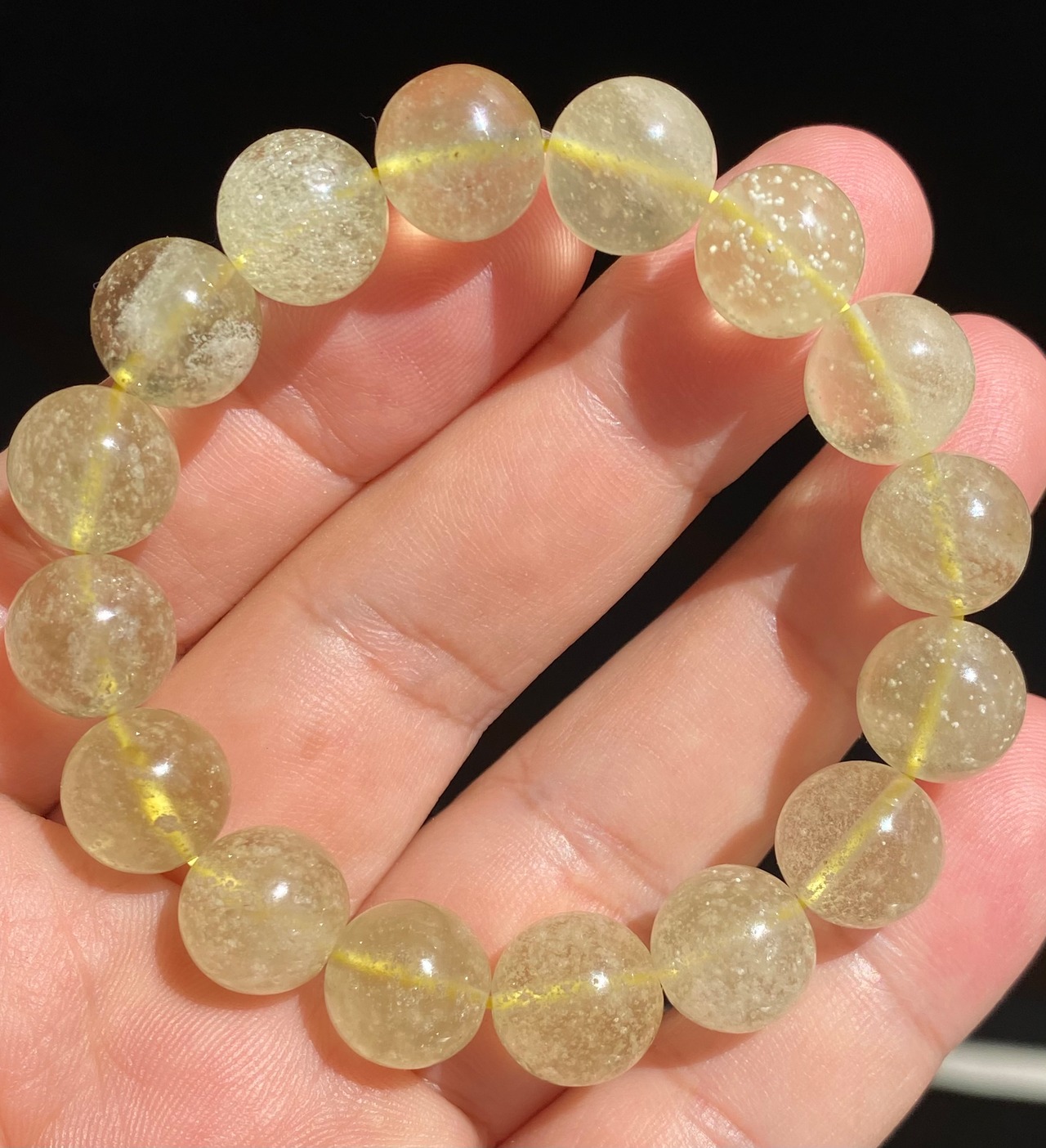 淡い黄色系が特徴であり、二酸化珪素(SiO2)の純度が98%で、黄緑、深緑、無色、乳白色等もあり気泡と内包物も良く含まれています。