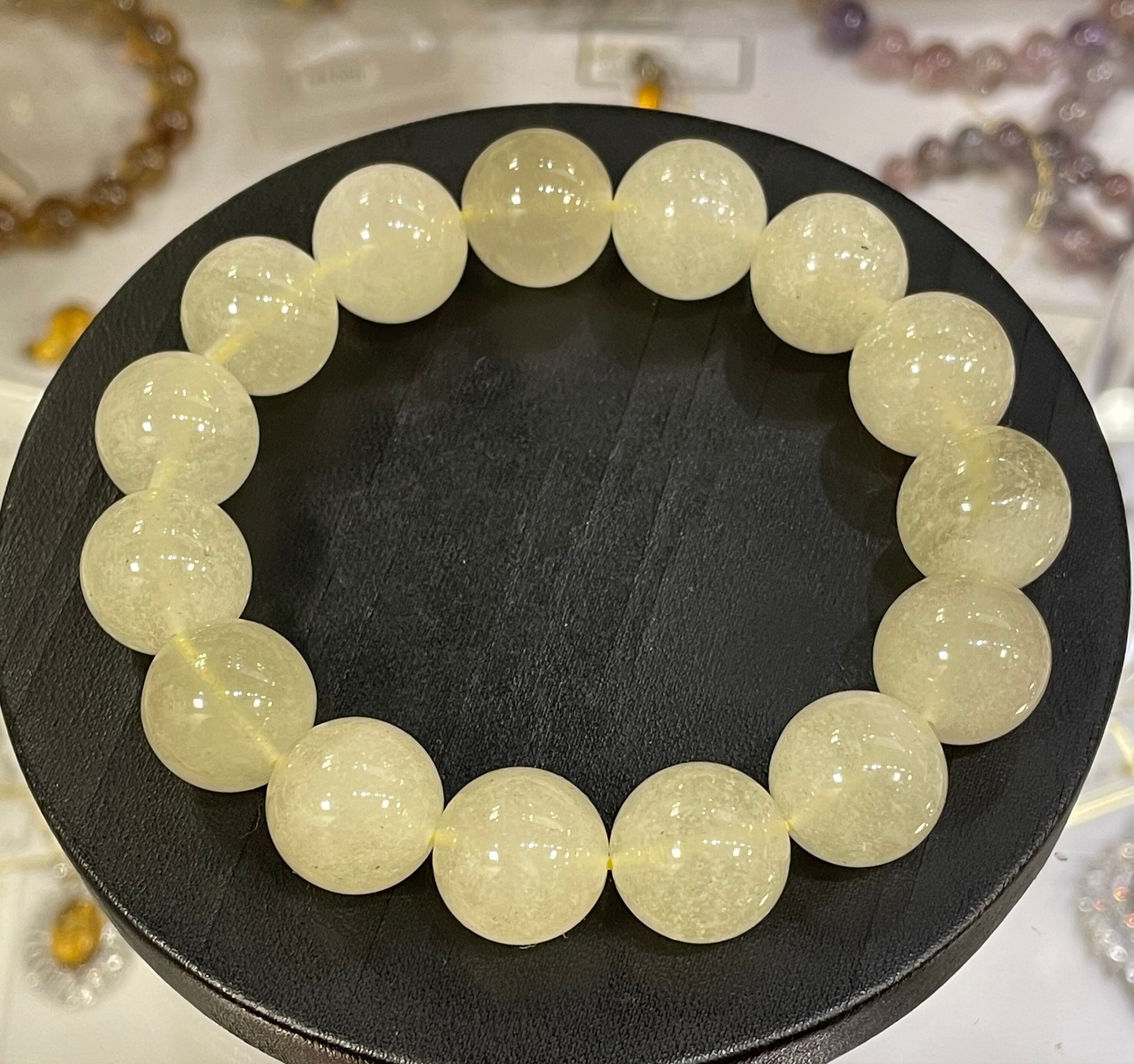 淡い黄色系が特徴であり、二酸化珪素(SiO2)の純度が98%で、黄緑、深緑、無色、乳白色等もあり気泡と内包物も良く含まれています。
