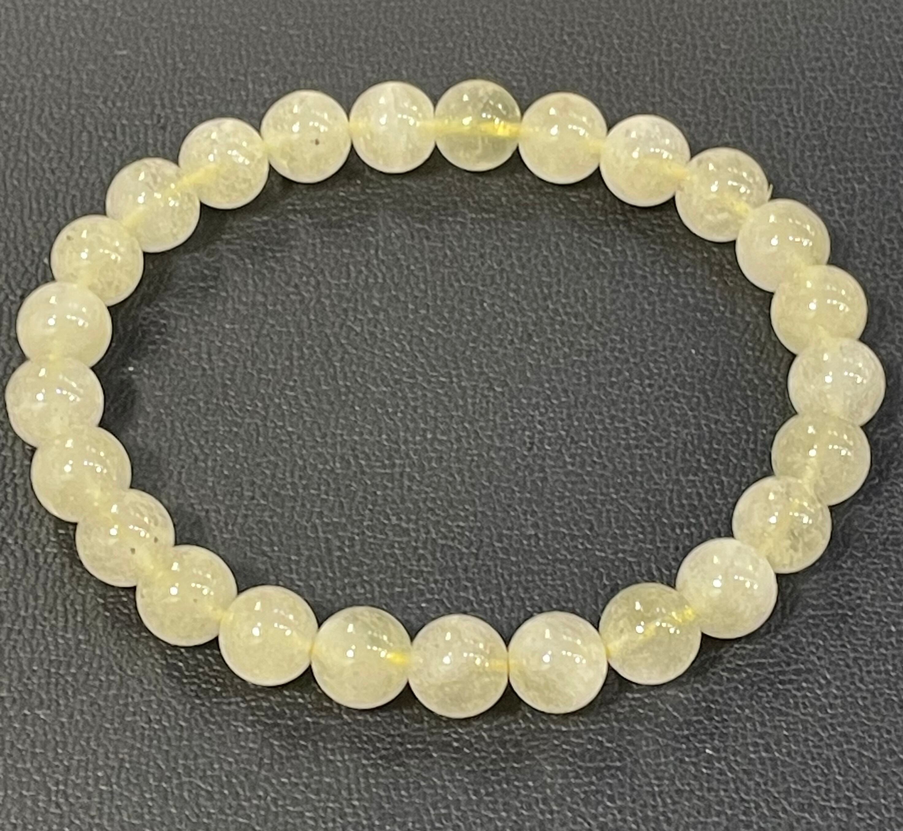 淡い黄色系が特徴であり、二酸化珪素(SiO2)の純度が98%で、黄緑、深緑、無色、乳白色等もあり気泡と内包物も良く含まれています。