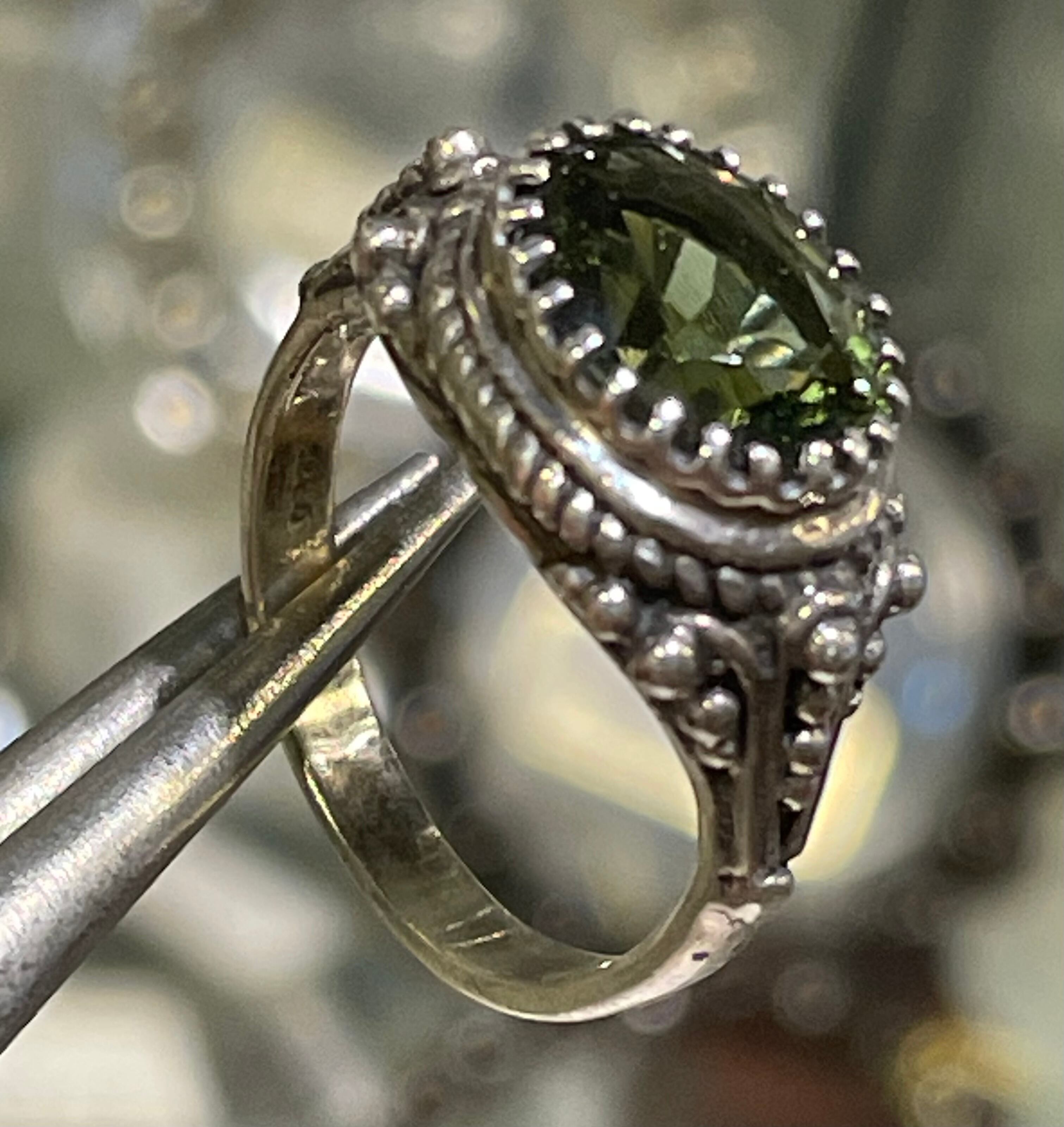 特選!宝石質モルダバイト指輪 アンティーク風 モルダバイトリング12号 限定一個